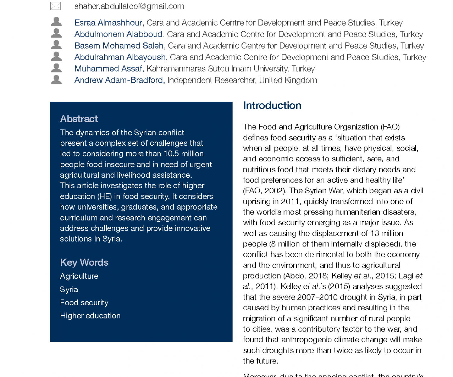 A non-profit civil organization, registered in Turkey. It is a network of Syrian academics and experts in Syria and diaspora from different fields including education, food security, livelihoods, sustainable development, social empowermenr and peacebuilding.